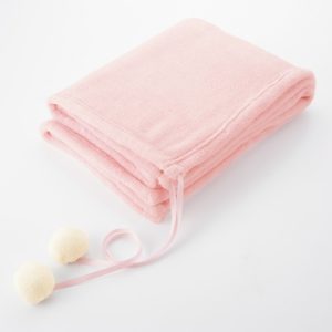 ポンポン付きのリボンで、ブランケットの他にもケープ風に羽織ったりやスカート風に巻いたりして使えます。